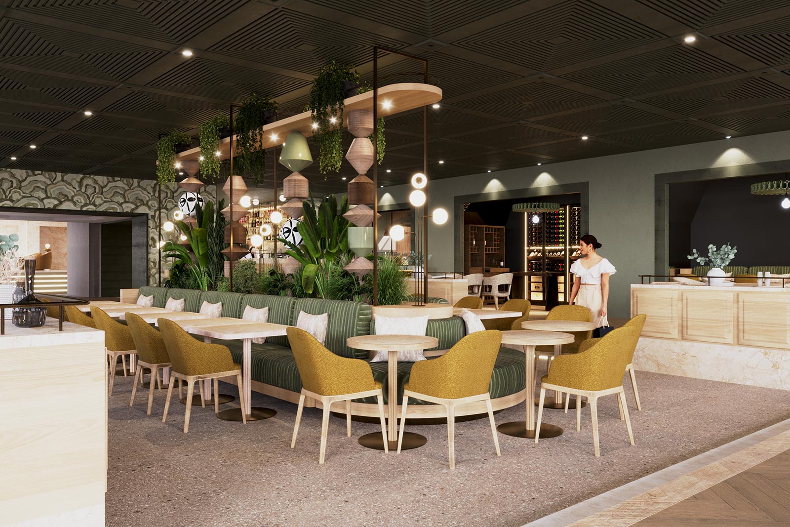 Connubio Bistrot, aperto tutto il giorno, accoglie sia gli ospiti dell’hotel sia il pubblico esterno in un ambiente sofisticato, dove il design contemporaneo e rilassante, ispirato alla biofilia, si fonde con un servizio attento e curato.